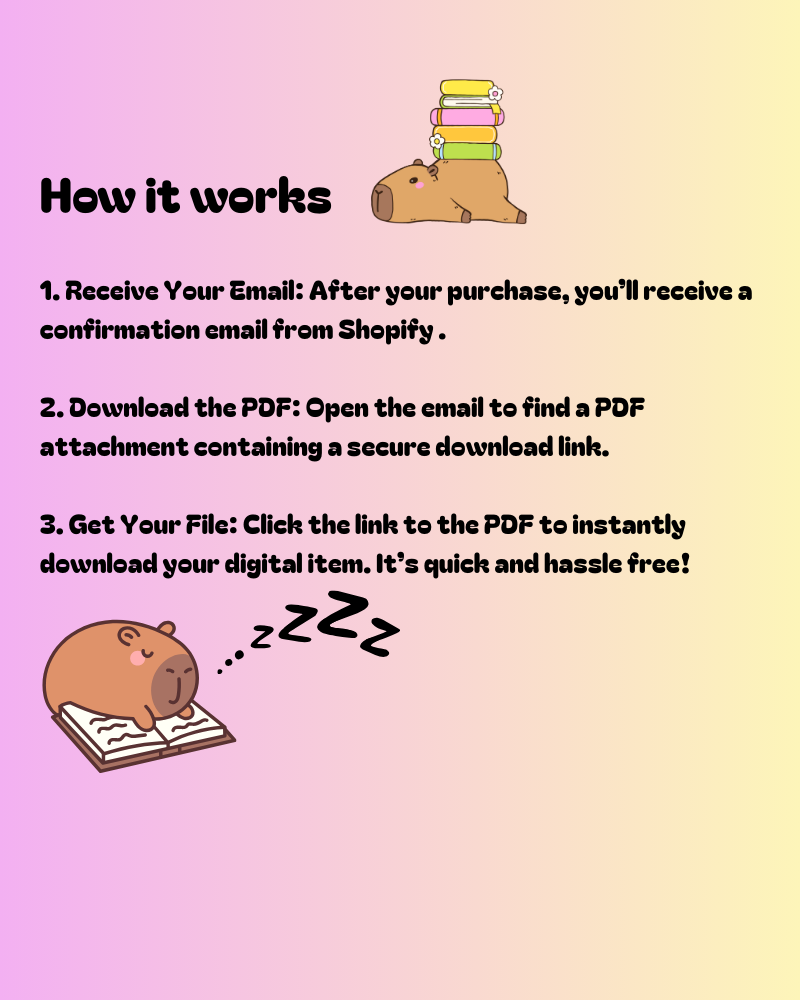 2. Download the PDF: Inside the email, you’ll find a content link which will redirect you back to shopify. This will include your PDF attachment. Download it to your device.